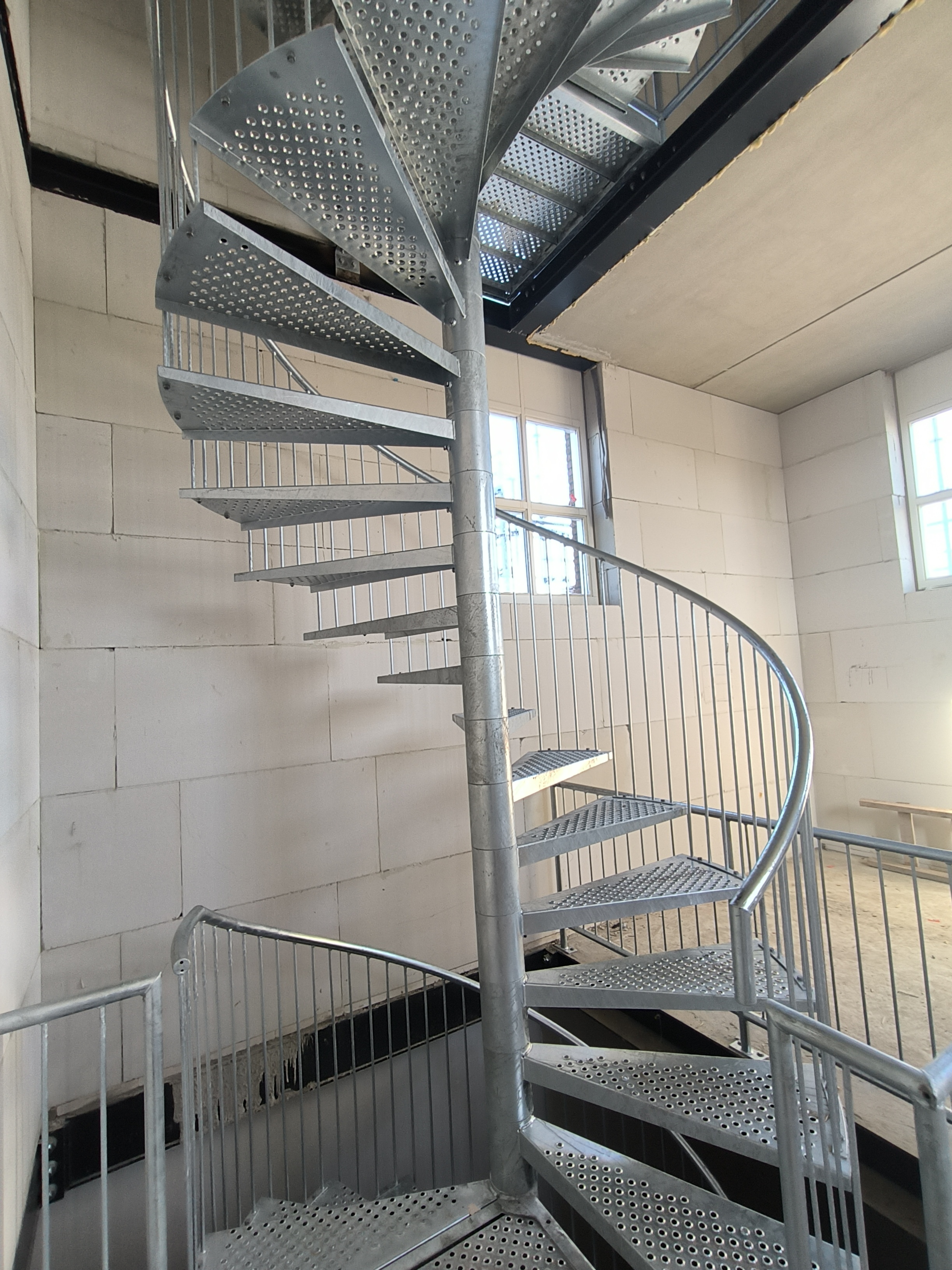 In opdracht van Bouwbedrijf J.G. Timmer hebben wij in het nieuwe kerkgebouw van de Gereformeerde Gemeente Kesteren een metalen spiltrap met diverse bordessen geplaatst. De trap biedt een praktische en ruimtebesparende oplossing voor de toegang tot de toren van het gebouw. Een degelijk ontwerp dat staat voor functionaliteit en veiligheid. Een mooi project om aan bij te dragen.